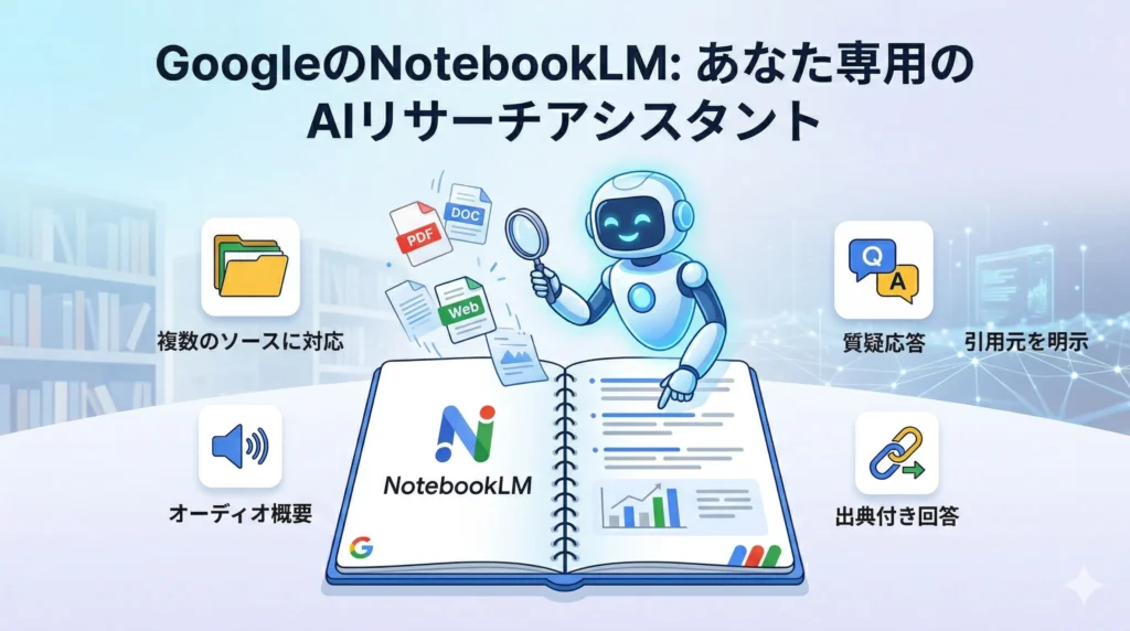 この記事では、NotebookLMの仕組みからコア機能、具体的な活用事例まで、その魅力を余すところなく解説します。